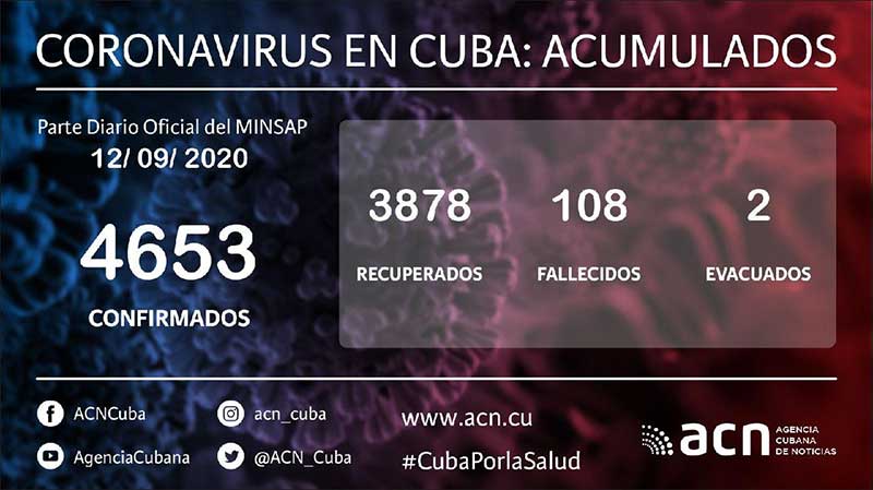 Al cierre de este viernes, Cuba reportó dos fallecidos, y 60 nuevos casos de COVID-19, para un acumulado de 4 653 desde marzo pasado; con 34 altas médicas, según informó este sábado en conferencia de prensa el doctor Francisco Durán García, director nacional de Epidemiología del Ministerio de Salud Pública (Minsap).